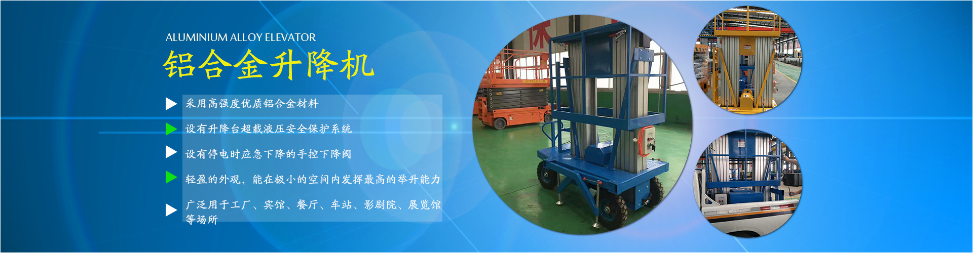 公司主要經(jīng)營:液壓貨梯、升降平臺、搬運(yùn)車、叉車及各種液壓設(shè)備等。并承接升降平臺出租業(yè)務(wù)。 產(chǎn)品廣泛用于:港口、電力、鋼鐵、造船、石油化工、礦山...